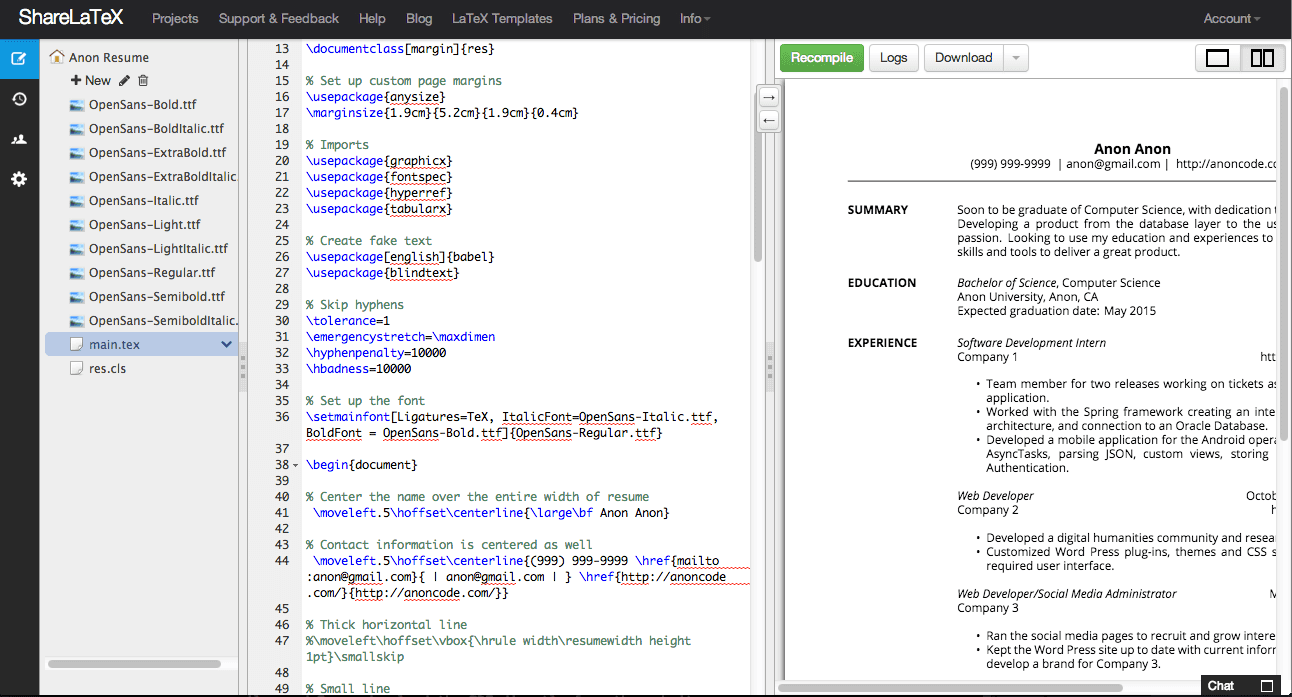 Overall, it was a great experience learning LaTeX and the technologies that people have created for it. I would highly recommend anyone interested in rewriting or redesigning their resume to check out the possibilities of LaTeX.