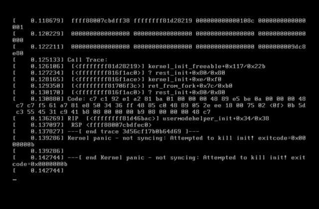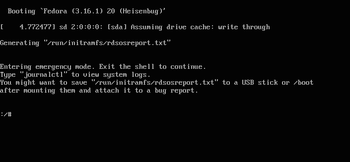 When booting into the command line interface with 100 threads, things got interesting because the operating system booted in emergency mode.