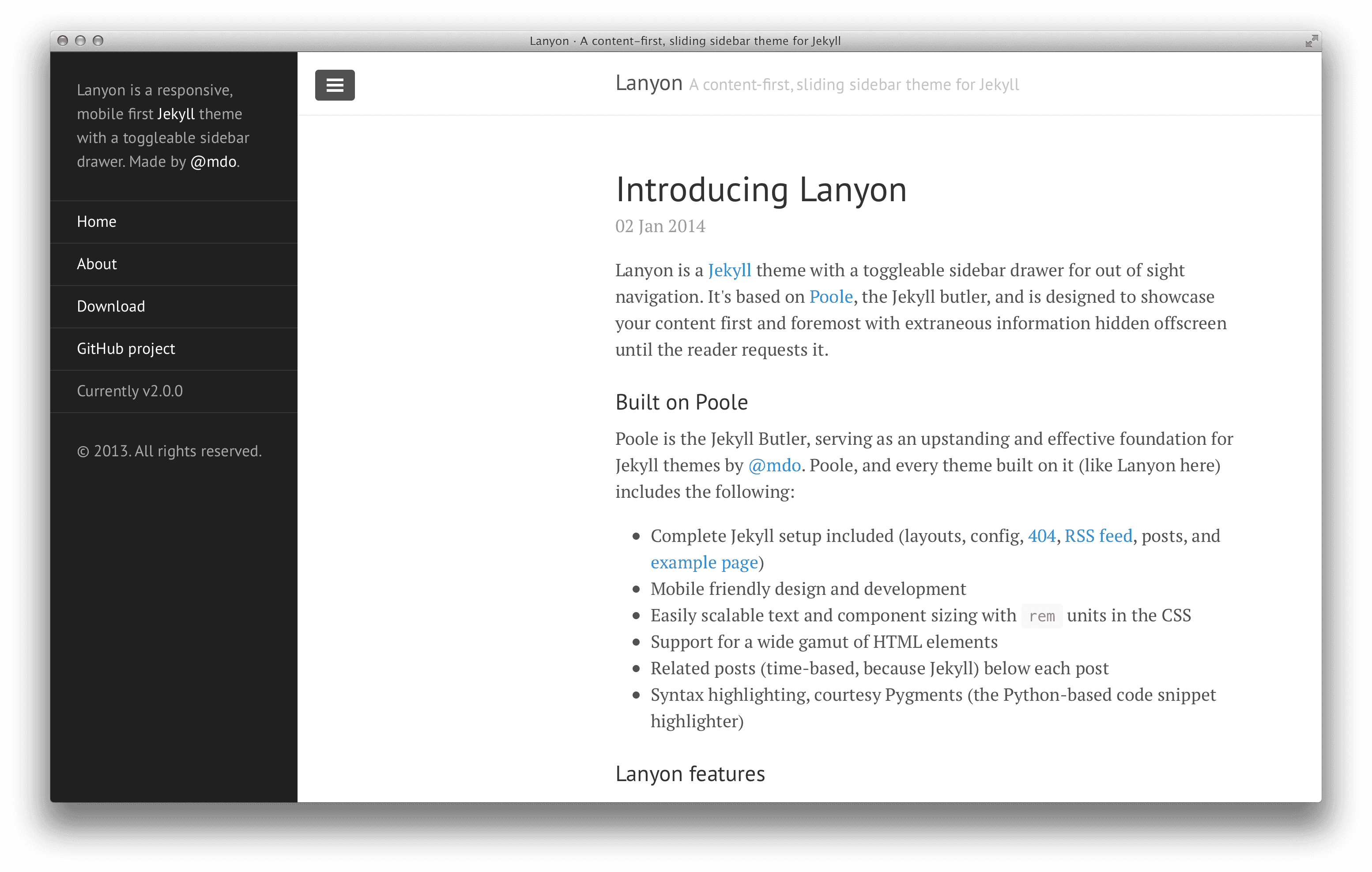 A content-first, sliding sidebar theme for Jekyll.