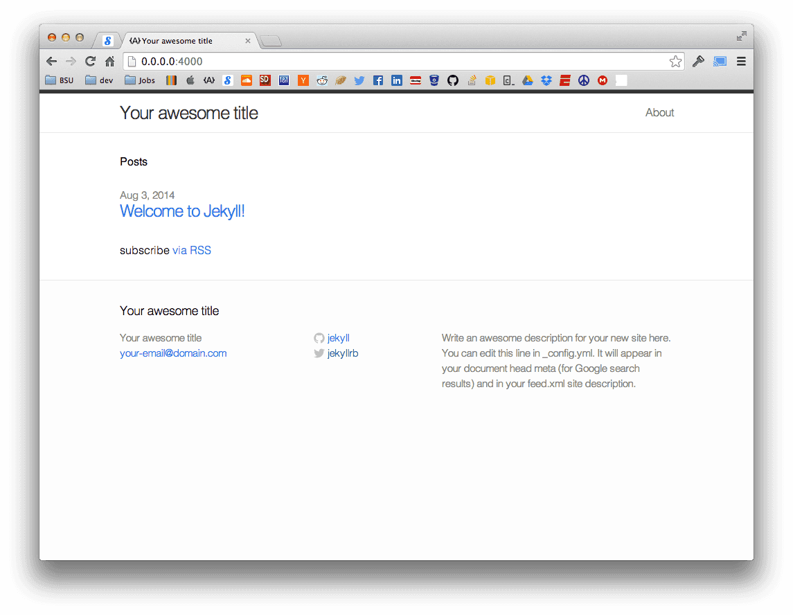 jekyll serveAnd ended up getting a working site on